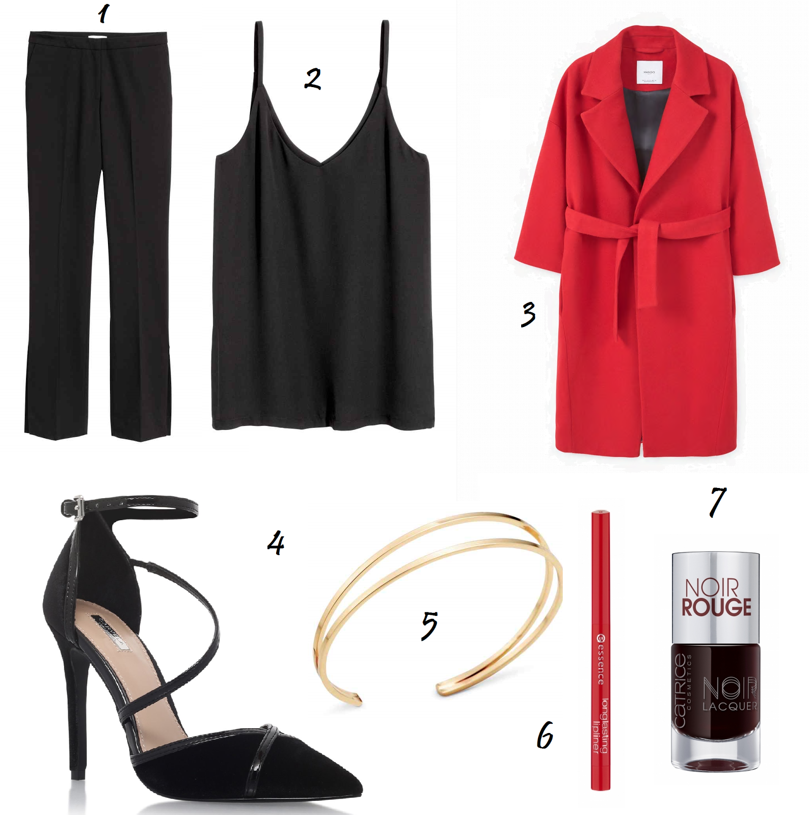 1- Calças pretas;